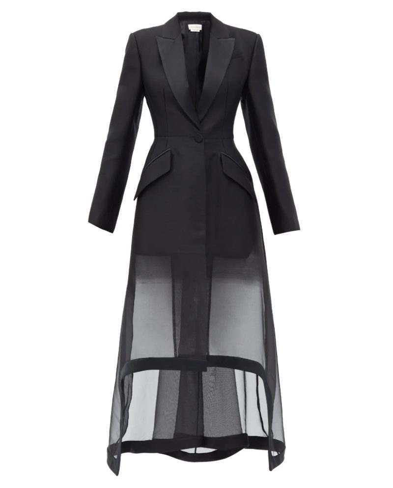 Alexander McQueen Sheer-Hem Single-Breasted Organza Coat