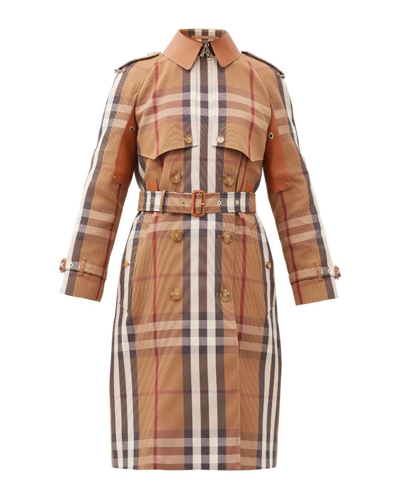 Burberry Leather-Panel Vintage-Check Canvas Trench Coat