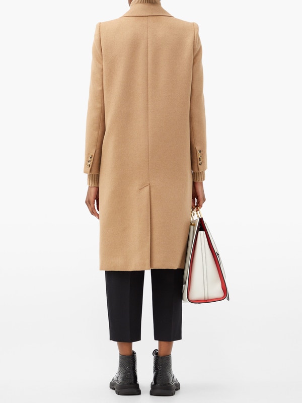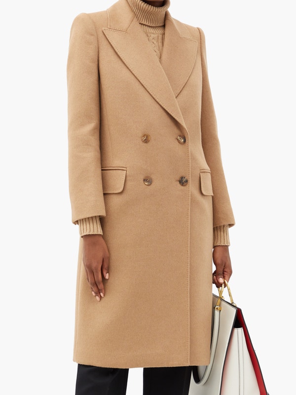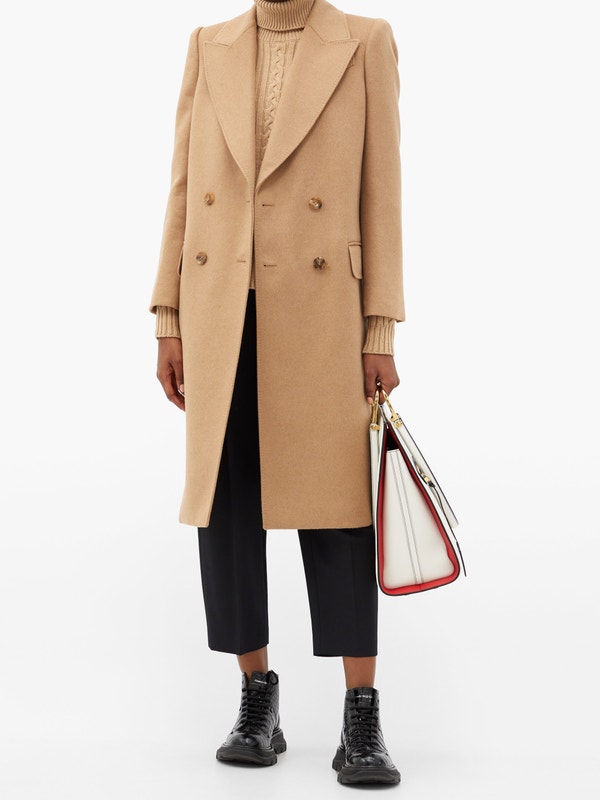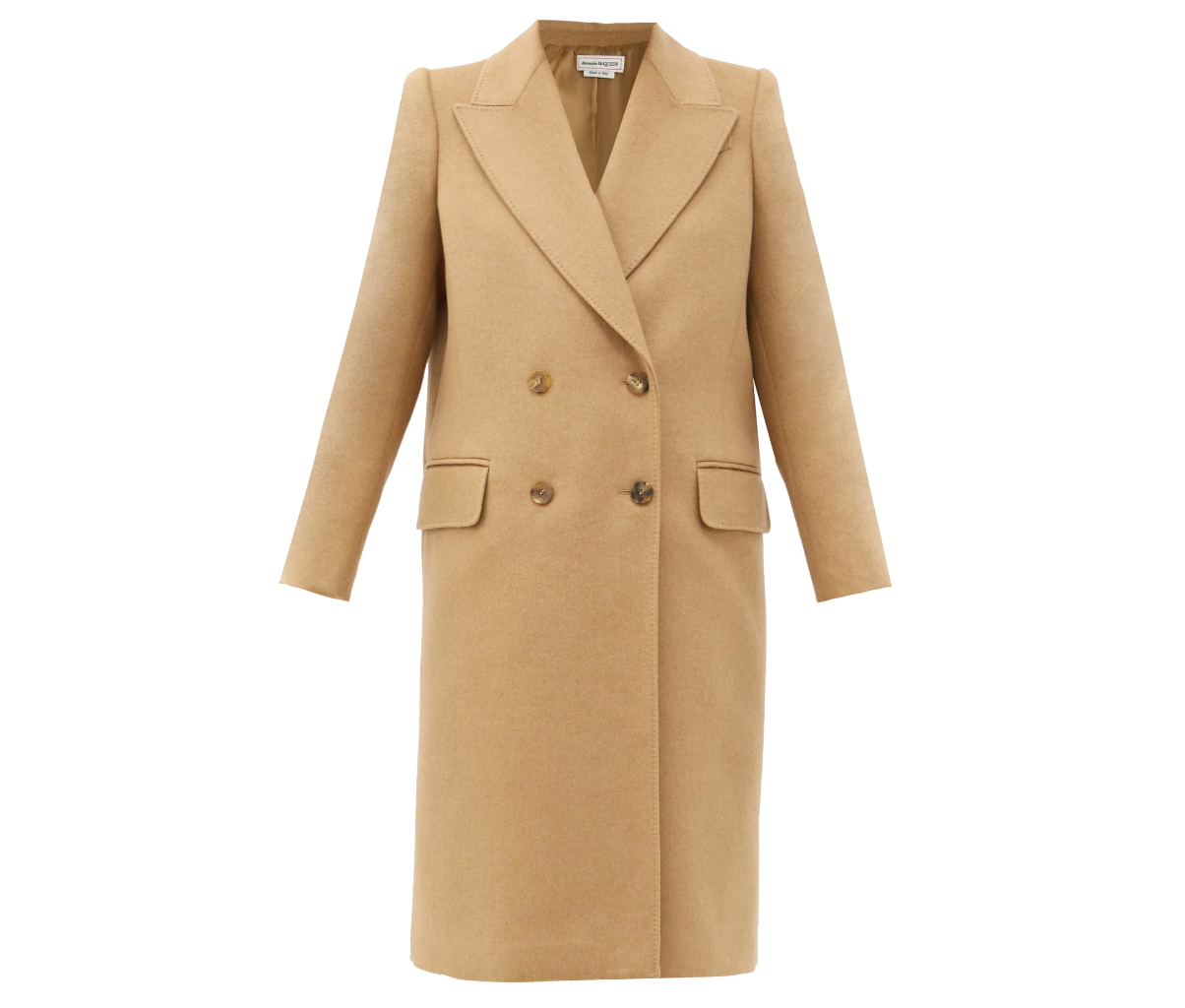 Alexander McQueen’s mastery of tailoring is exampled by this toffee-coloured coat, which is rendered from fleecy camel hair. It’s made in Italy and shaped to a straight-cut silhouette with exaggerated peak lapels adding a nuanced subversive streak. Layer it over neutral separates to channel the label’s earthy lookbook palette.