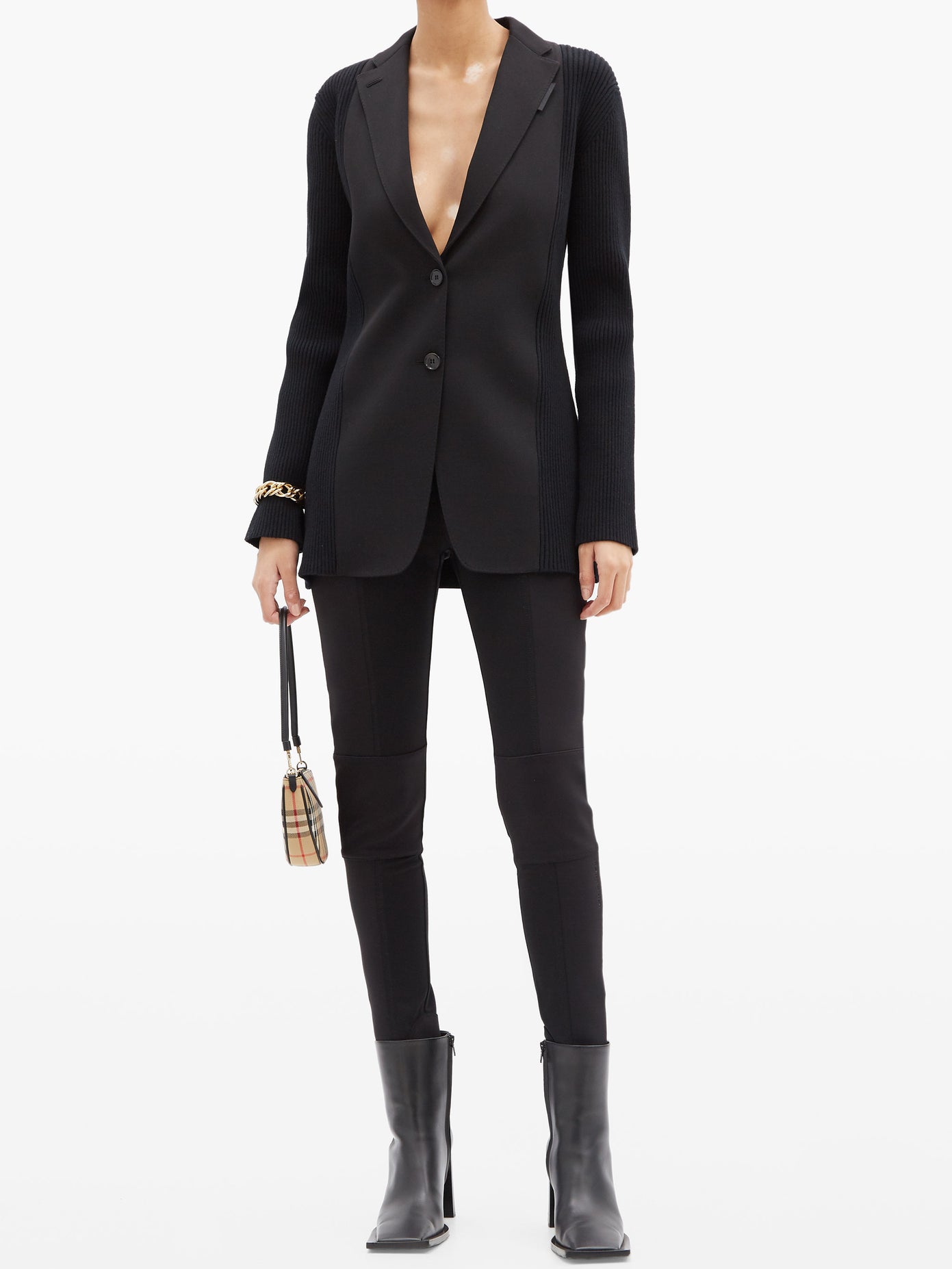Burberry looks to equestrian influences for these black Meera leggings, which are reminiscent of jodhpurs. They’re made in Italy from flattering stretch jersey to a panelled silhouette embossed with the house’s logo below the knee. Personalise the shape with the adjustable cuff zips.