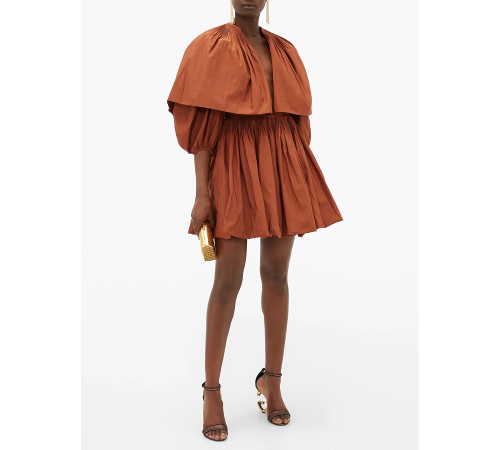 Shown here with Valentino Caped V-neck pleated cotton-blend mini dress.
