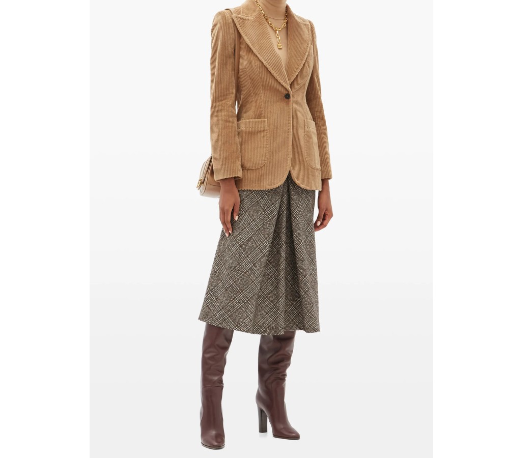 Shown here with Dolce & Gabbana Single-breasted cotton-blend corduroy blazer, Dolce & Gabbana Roll-neck cashmere-blend sweater, Dolce & Gabbana Prince of Wales-check wool-blend tweed midi skirt, Dolce & Gabbana DG Amore leather cross-body bag and Dolce & Gabbana DG-charm chain necklace.