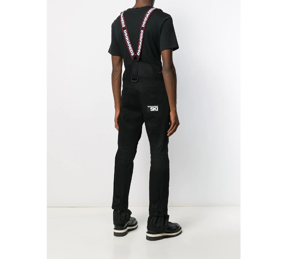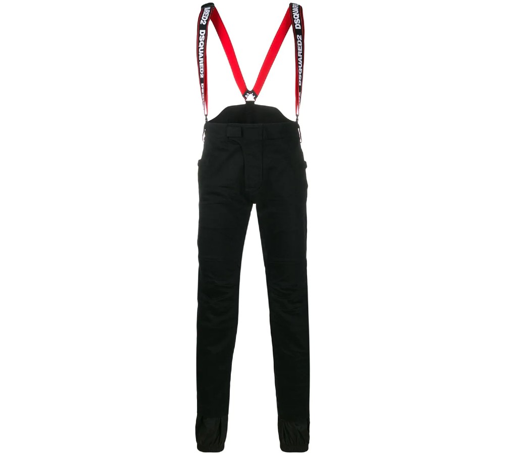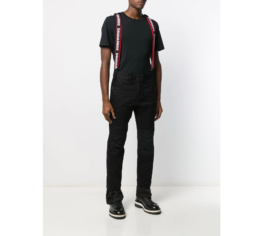 Get well-prepared for your next skiing, snowboarding trip or even for a street walk in these suspenders ski trousers from DSQUARED2. You’ll keep your legs warm and dry all day, no matter the weather. Featuring adjustable shoulder straps, a concealed front fastening, side slit pockets, a crisscross back, back pockets, a white and red printed logo and adjustable ankle cuffs.