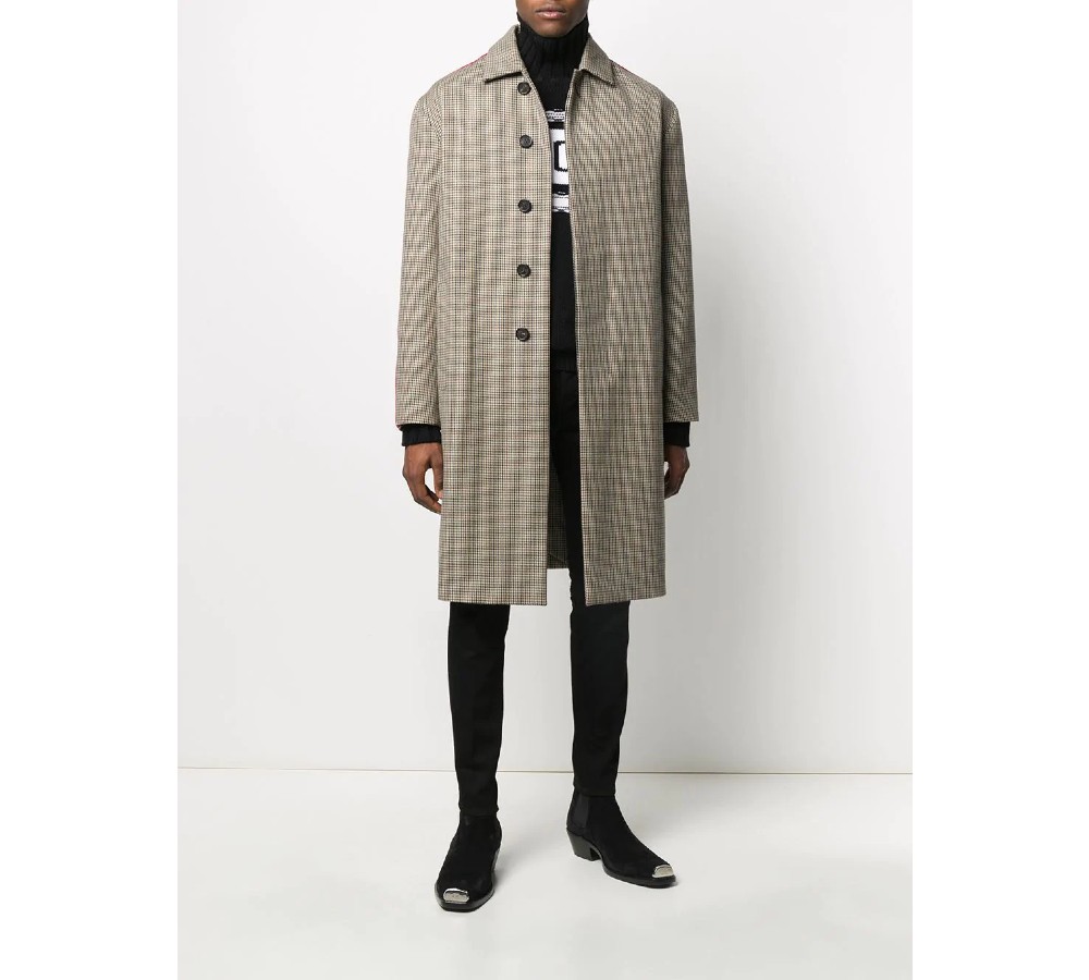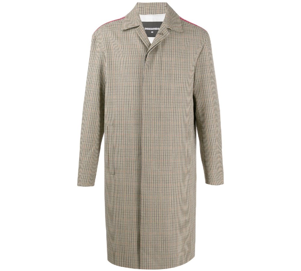 Some things aren’t exactly what they seem. Take this beige, gold-tone and black virgin wool side panelled midi coat from DSQUARED2 for instance, it looks warm and it is warm. Plus classy, never forget that. Featuring a check pattern, a spread collar, a concealed front fastening, long sleeves, two front pockets, a back slit at hem, a straight hem and contrasting red panels to the shoulders with white logo appliqués.