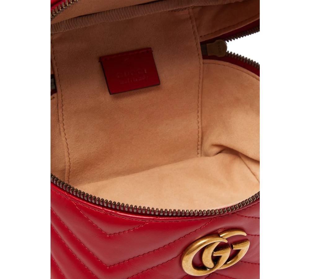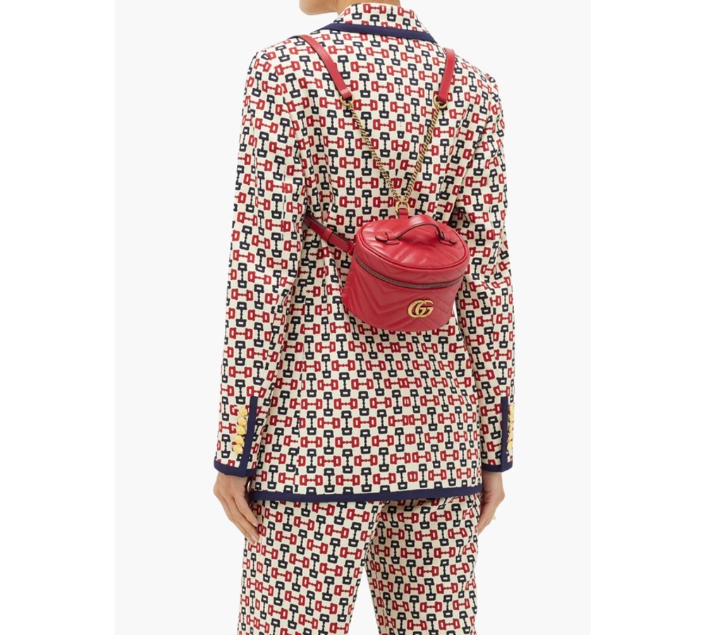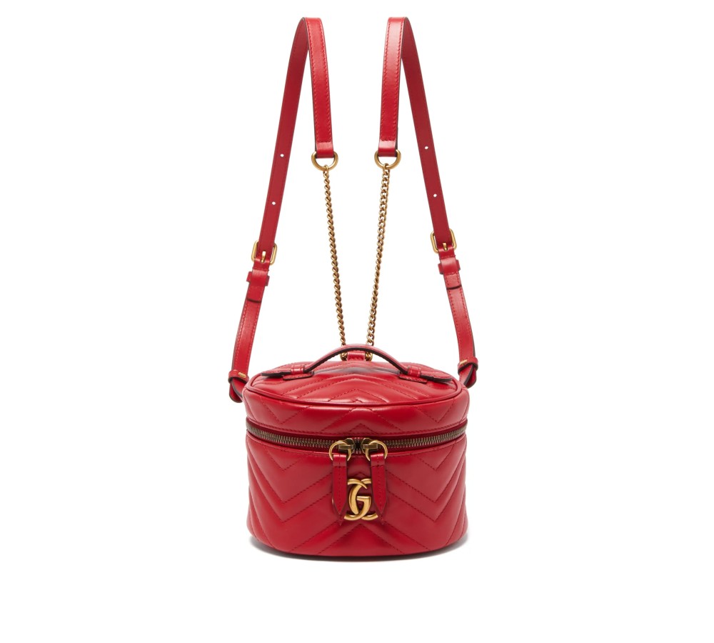 Gucci’s mini red backpack is part of the house’s coveted Marmont collection which is inspired by the house’s iconic GG belt buckle from the 1970s. It’s crafted in Italy from chevron-quilted leather with antiqued gold hardware and joined with chain and adjustable buckled shoulder straps. Alternatively, carry it via the top handle alongside smart tailoring.