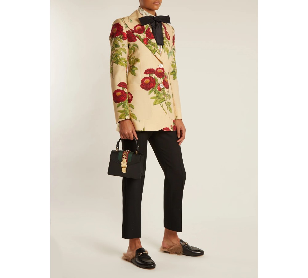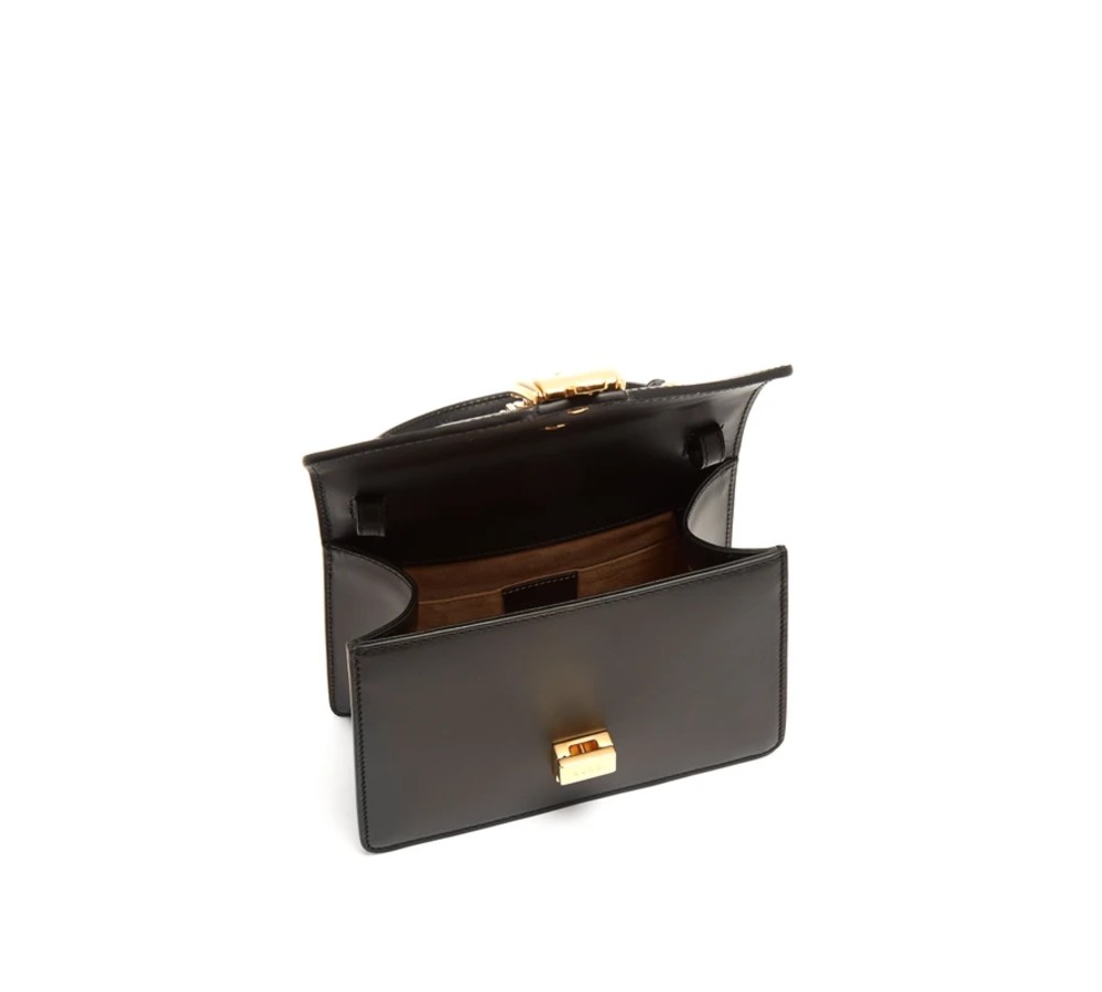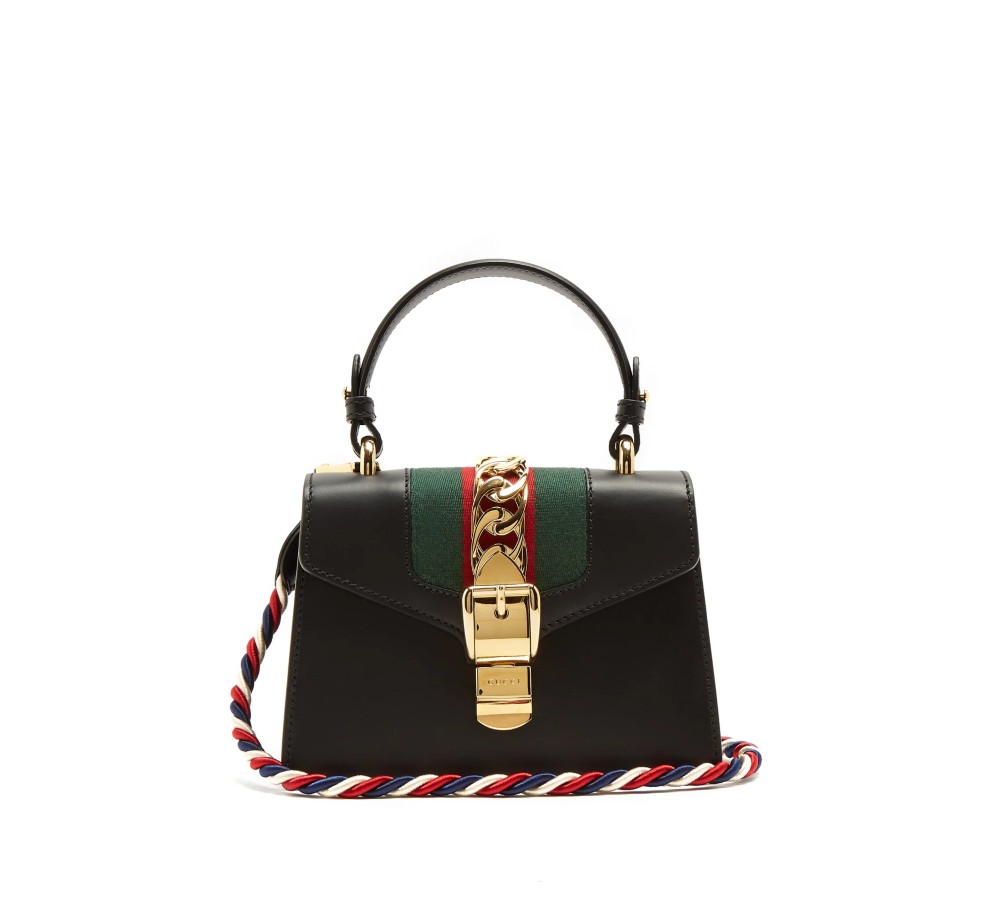 Gucci’s black smooth leather Sylvie bag comes in a miniature, demure shape for the new season – a style that origianally deuted as part of the AW16 collection. It’s crafted in Italy with the hallmark red and green Web-striped centre panel that’s layered with a gold-tone metal chain and buckle plaques, then finished with two interchangeable shoulder straps: one crafted from black leather and the other fashioned from twisted-rope in red, off-white, and navy. Consider it as a pivotal piece for everyday styling.