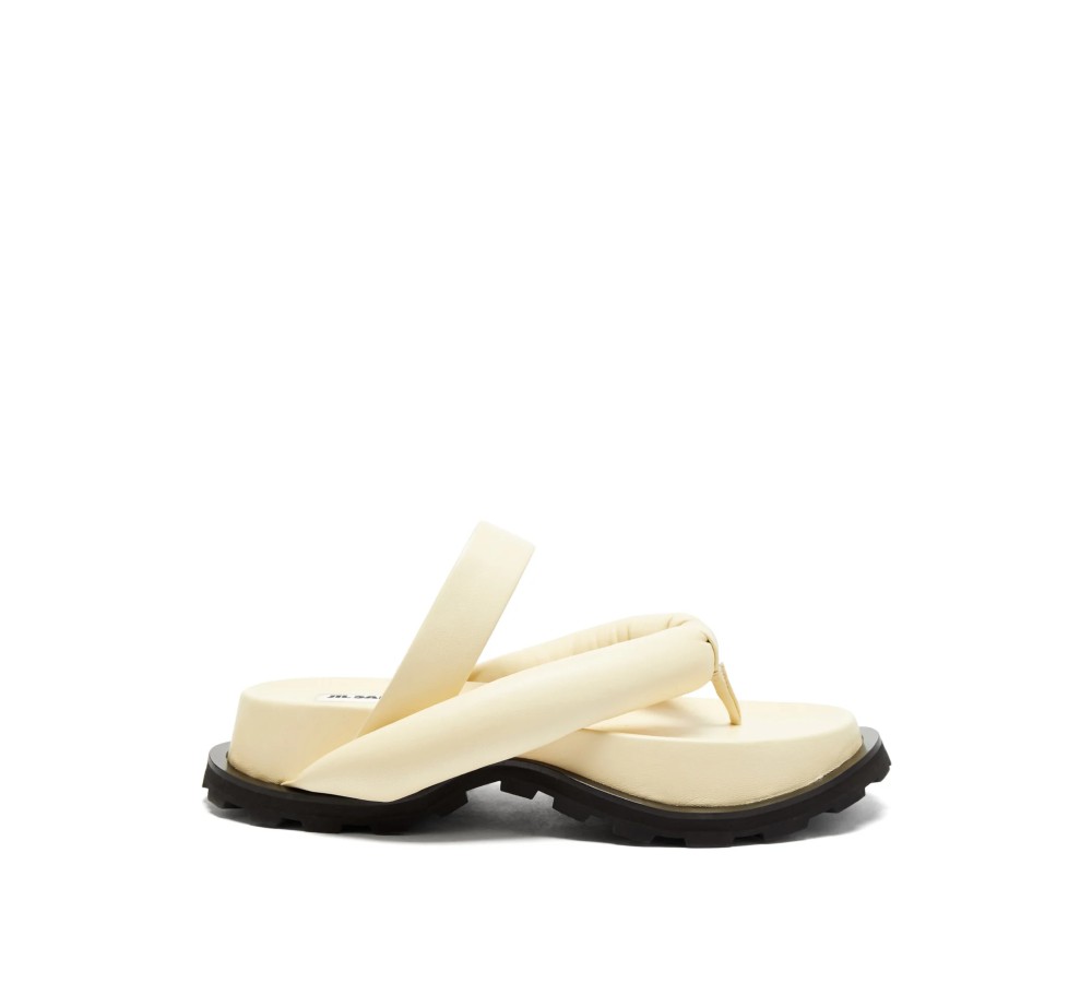 Jil Sander’s beige slides are an update on staple styles using contemporary constructions. They’re made in Italy from butter-soft nappa leather with instep and padded thong straps, then rest on a chunky footbed and black rubber trek sole. Wear them to bring an elevated off-duty finish to considered ensembles.