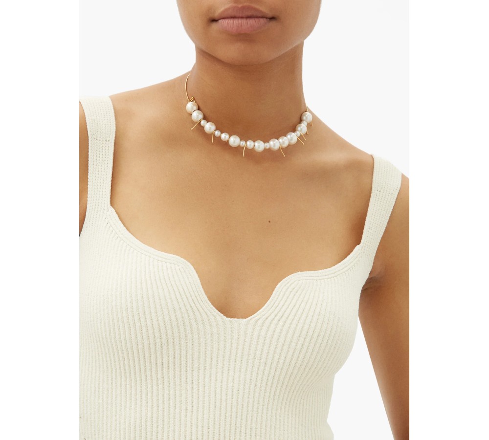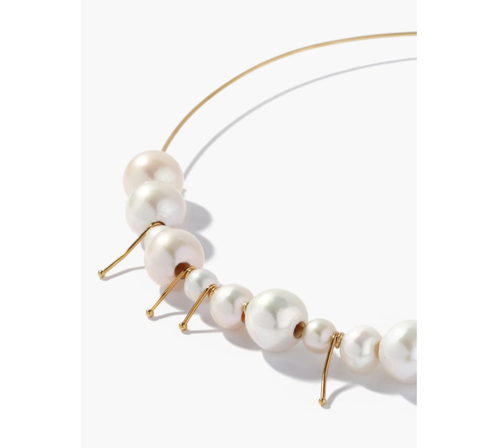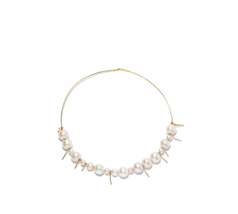Jil Sander creative directors Luke and Lucie Meier riff on minimalist tropes to create this sculptural gold-plated choker. It’s meticulously crafted in Italy where it’s shaped to a slim wire frame adorned by freshwater pearls. Wear it to bring contemporary splendour to a variety of looks.
