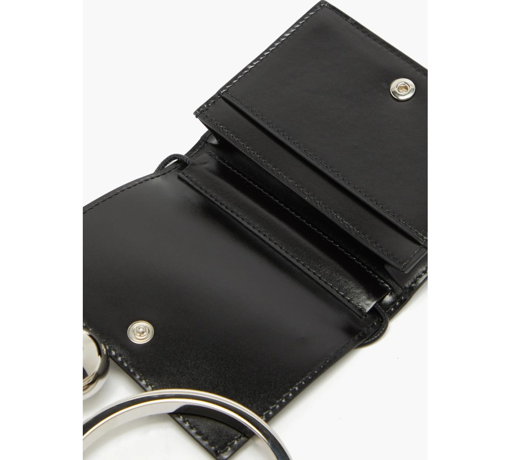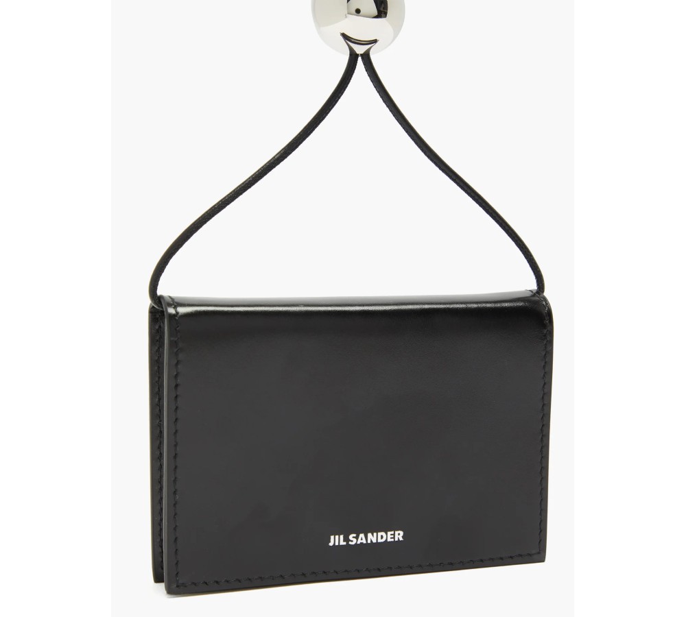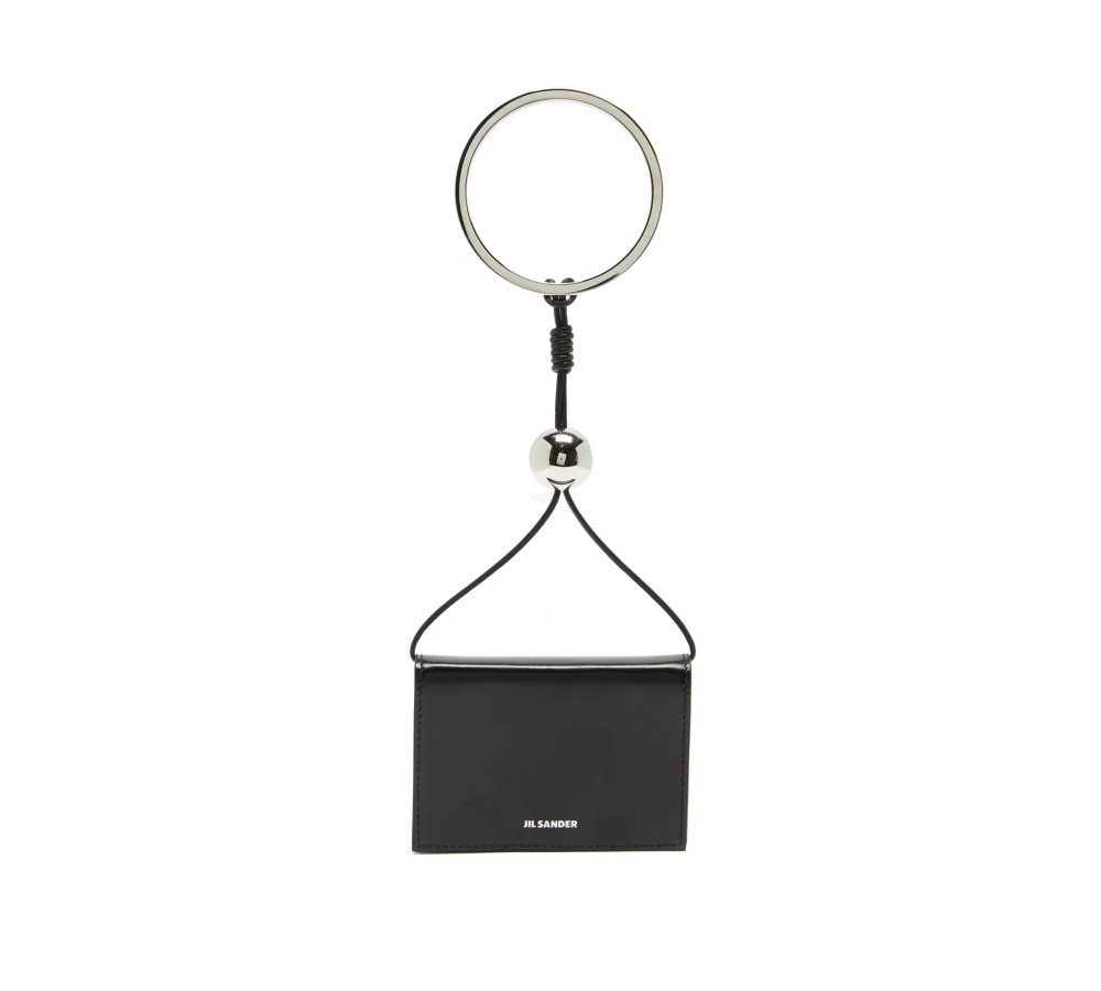 Jil Sander’s black wristlet wallet is decorated with a silver ring and a sphere – two sculptural elements that are characteristic of the label’s minimalist silhouettes. It’s impeccably crafted in Italy from smooth leather hot-stamped with a considered logo, then is fitted with two slip pockets and an internal compartment. Use it as the contemporary accent to a curated day-to-evening edit.
