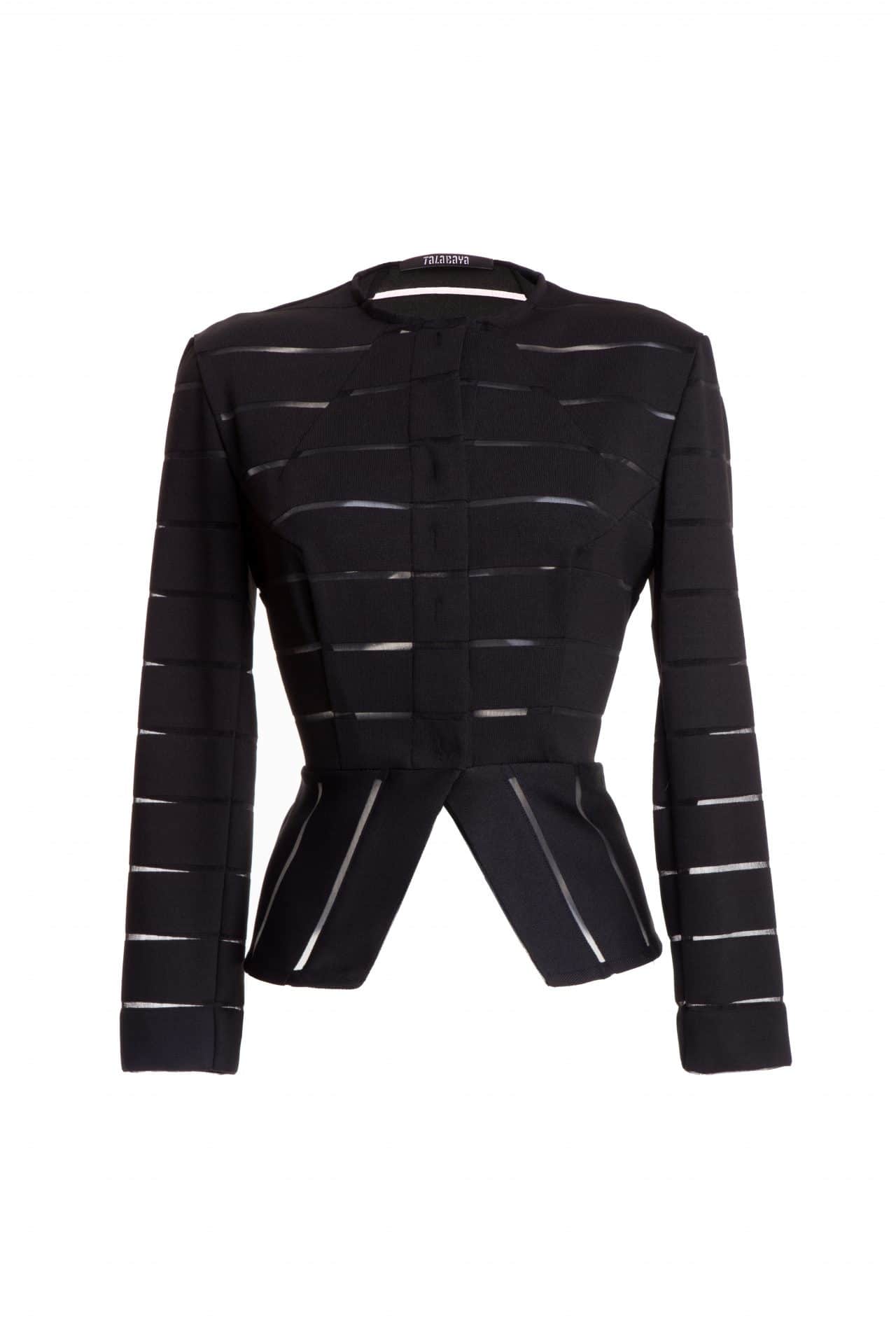 Striped stretch jacket IRIS jacket is made from stretch-knit material and thanks to the peplum it enhances your curves. The striped material is semi-transparent, if concerned about your modesty, just combine with your favourite shirt, top or Talashirt by Talabaya. Wear with your favourite pants or leggings and sneakers for urban style, or with heels or pumps for the office. We recommend combining with Iris skirt – the perfect striped set is born.