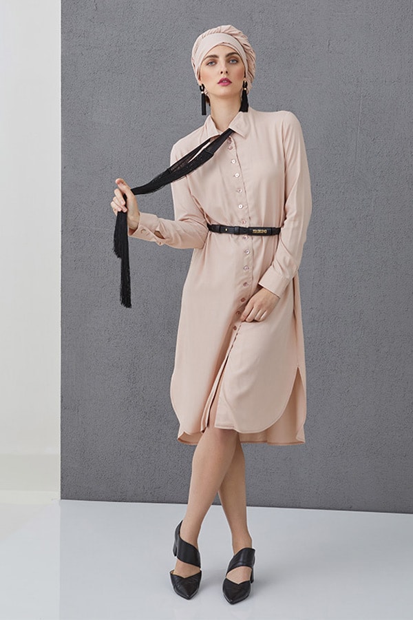 Airy shirt with tunnel collar It’s the subtle details that separate one classic shirt from another. TALASHIRT by TALABAYA is a special item for your wardrobe. Cut from loose airy viscose. It’s decorated, sophisticated and minimalistic with mother-of-pearl buttons and tunnel TALABAYA collar. Add an item of jewellery or a ribbon to create a sophisticated original style. Long sleeves finished with square buttoned cuffs. Wear under the ALIA coat or ARIANA vest, or tuck the curved hem into the waistband of your ARETHA skirt or your favourite pants or leggings. *The shirt is sold without a leather belt – add the TALABAYA BELT to your order.