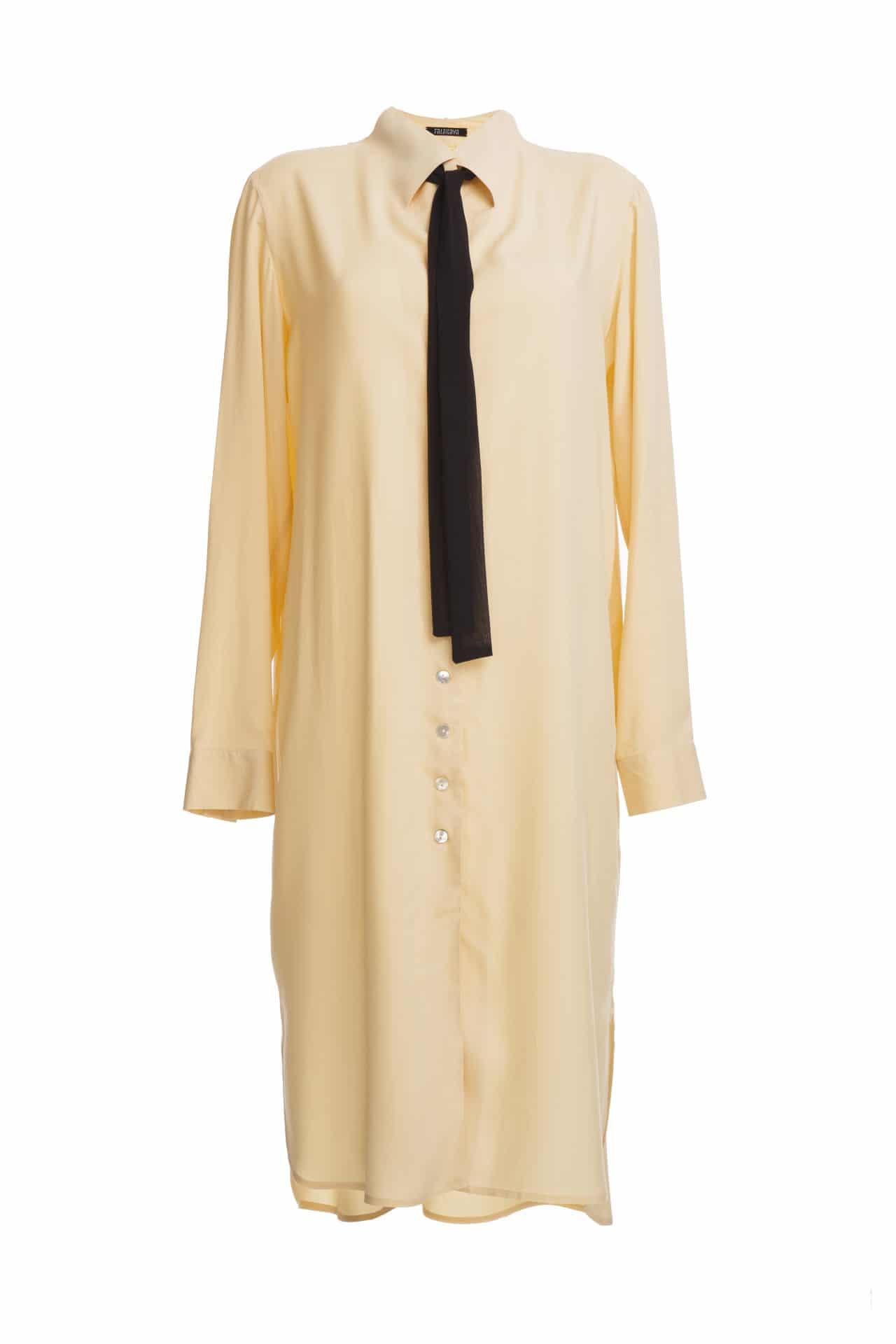 Airy shirt with tunnel collar It’s the subtle details that separate one classic shirt from another. TALASHIRT by TALABAYA is a special item for your wardrobe. Cut from loose airy viscose. It’s decorated, sophisticated and minimalistic with mother-of-pearl buttons and tunnel TALABAYA collar. Add an item of jewellery or a ribbon to create a sophisticated original style. Long sleeves finished with square buttoned cuffs. Wear under the ALIA coat or ARIANA vest, or tuck the curved hem into the waistband of your ARETHA skirt or your favourite pants or leggings. *The shirt is sold without a leather belt – add the TALABAYA BELT to your order.